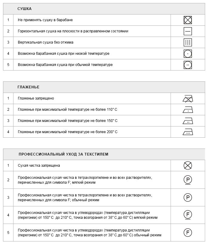 РАСШИФРОВКА ЗНАКОВ ПО УХОДУ ЗА ОДЕЖДОЙ