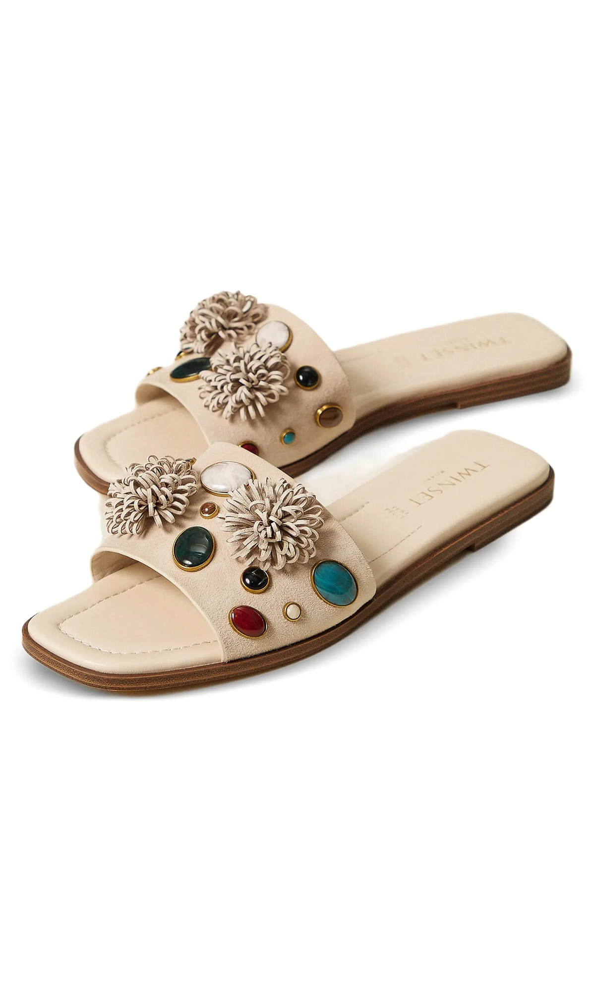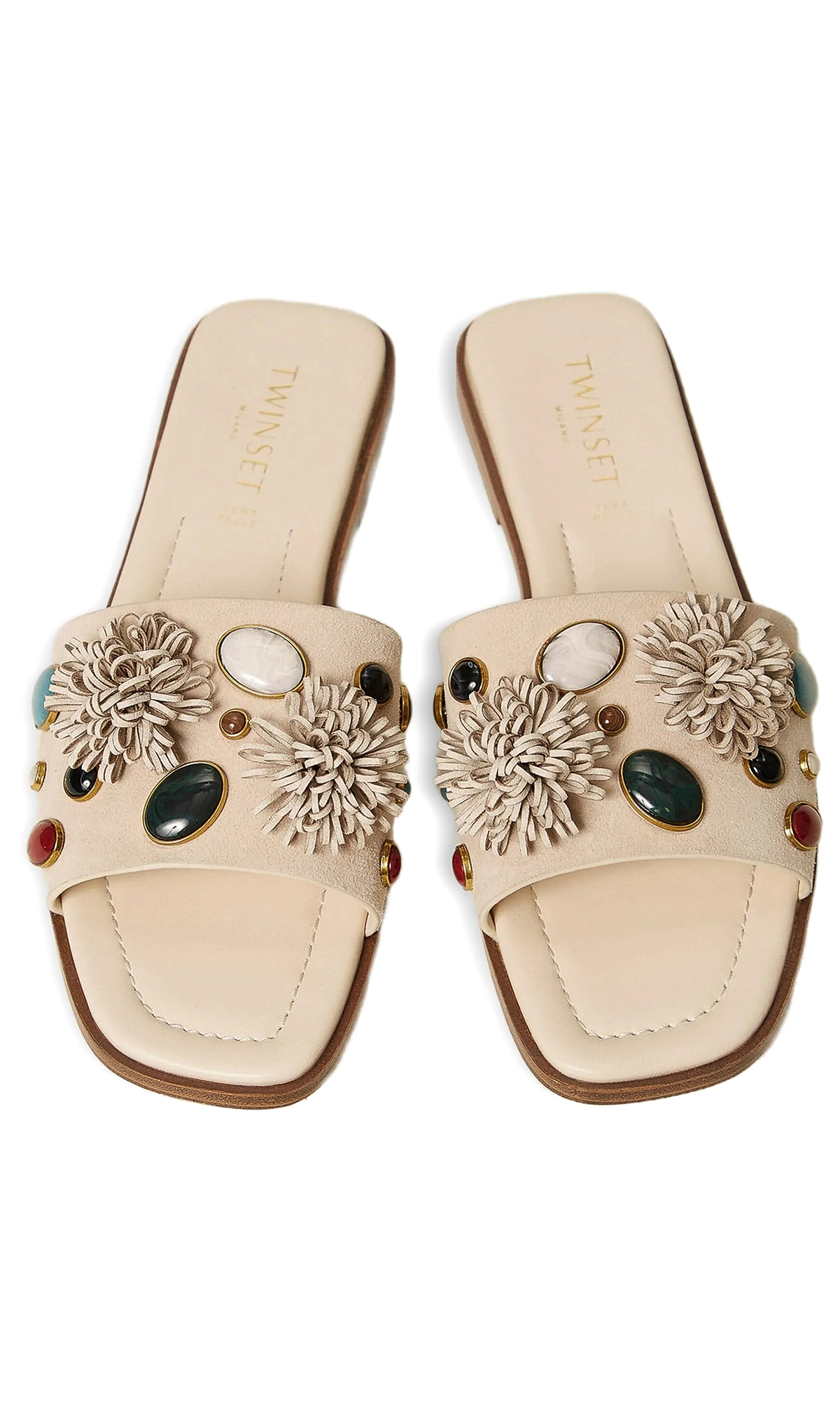 Замшевые шлепанцы с декоративными камнями